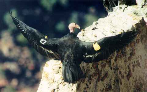 The Condor spread its wings out and ran at the ewe chasing it off the rock.