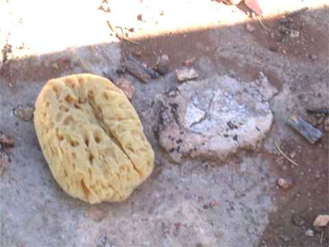So that we might visualize better the Ranger put a store bought sponge down beside the fossil sponge. |
