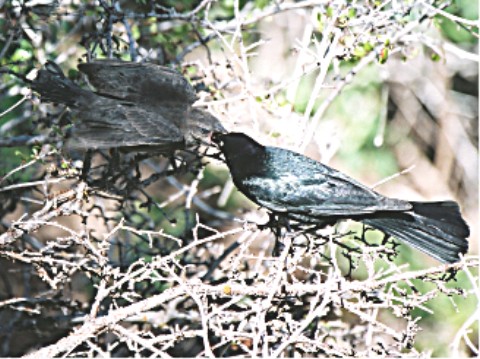 OK, that's more like it. This is a Brewers Blackbird male feeding its chick.