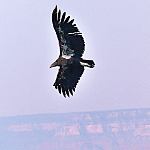 as they soar over and perch on the cliff rocks at the South rim of the Grand Canyon