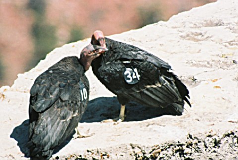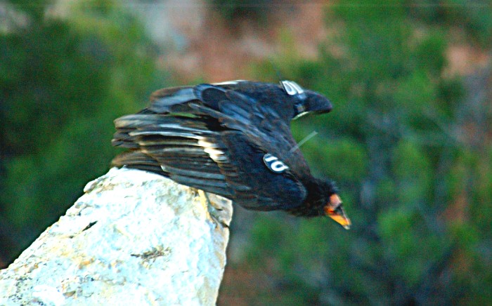 as they soar over and perch on the cliff rocks at the South rim of the Grand Canyon