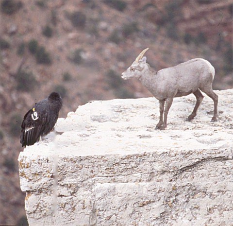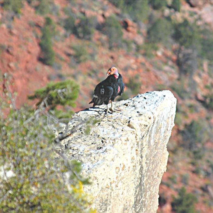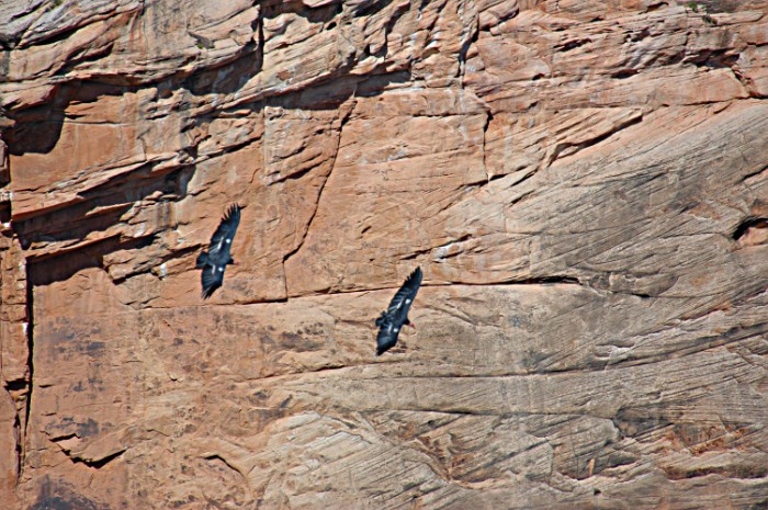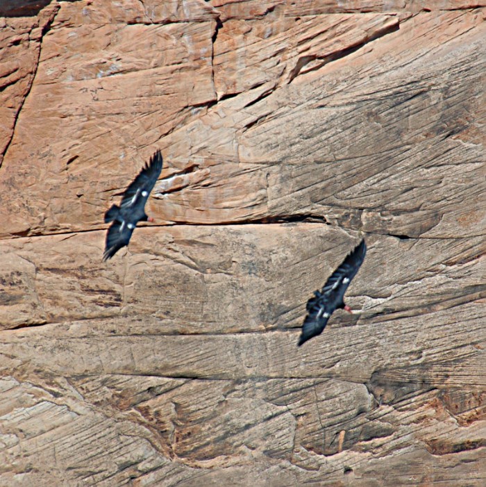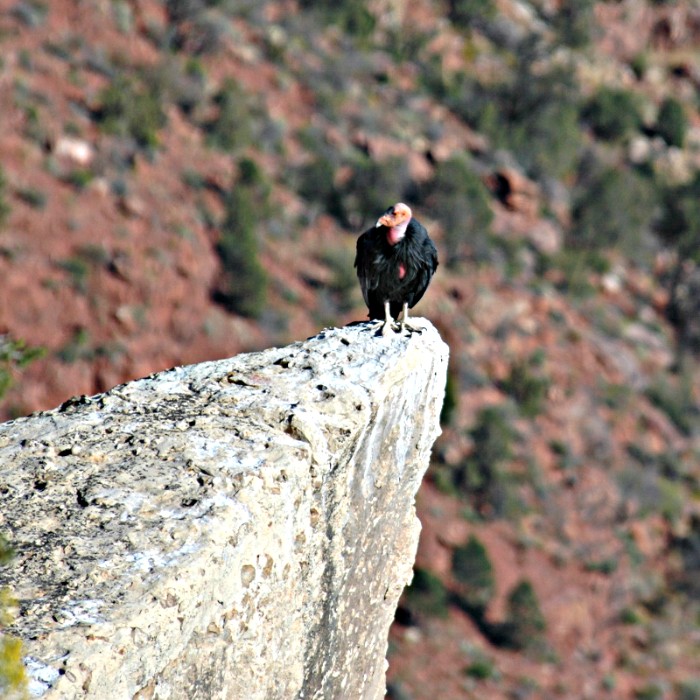 as they soar over and perch on the cliff rocks at the South rim of the Grand Canyon