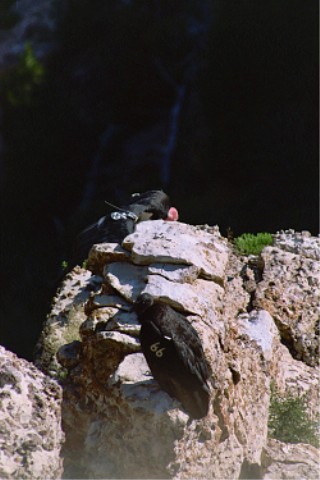 as they soar over and perch on the cliff rocks at the South rim of the Grand Canyon