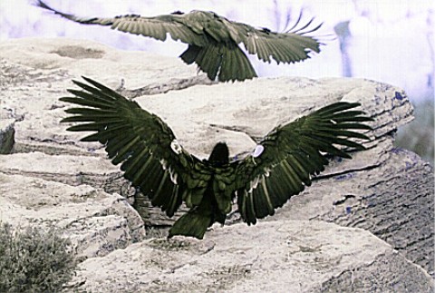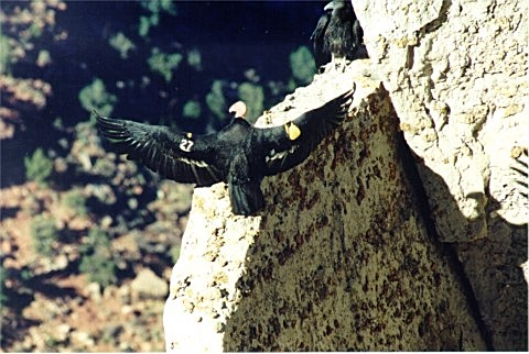 as they soar over and perch on the cliff rocks at the South rim of the Grand Canyon