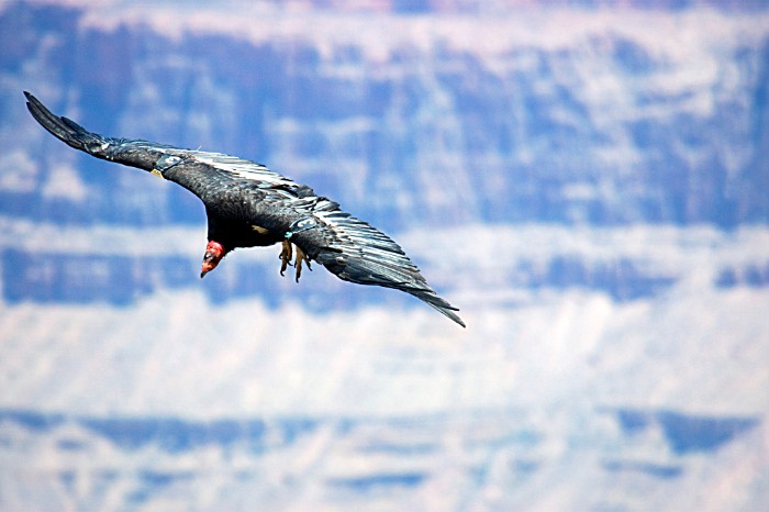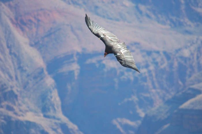 as they soar over and perch on the cliff rocks at the South rim of the Grand Canyon
