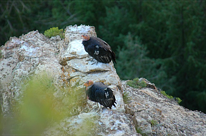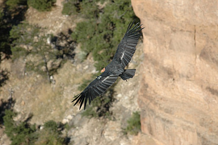 as they soar over and perch on the cliff rocks at the South rim of the Grand Canyon