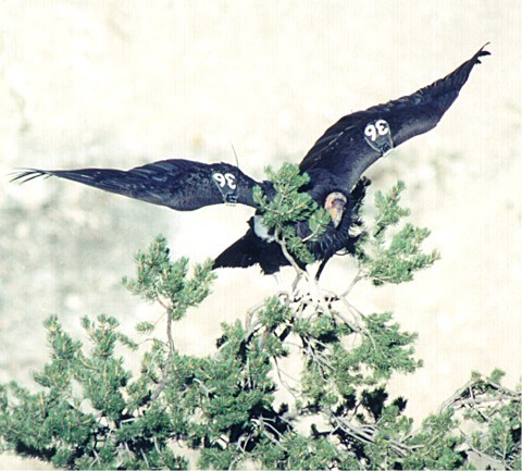 as they soar over and perch on the cliff rocks at the South rim of the Grand Canyon