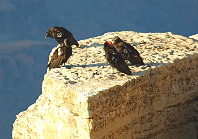 as they soar over and perch on the cliff rocks at the South rim of the Grand Canyon