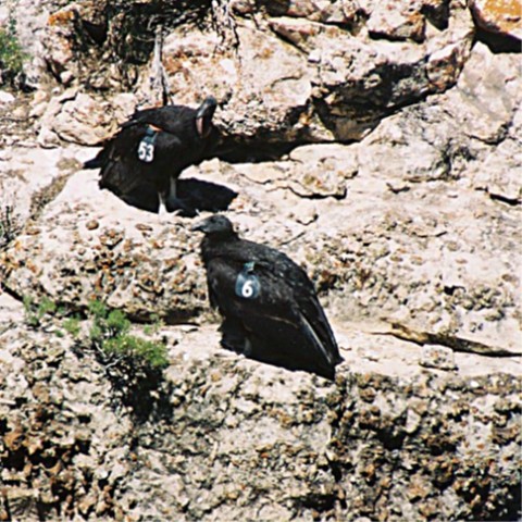 as they soar over and perch on the cliff rocks at the South rim of the Grand Canyon