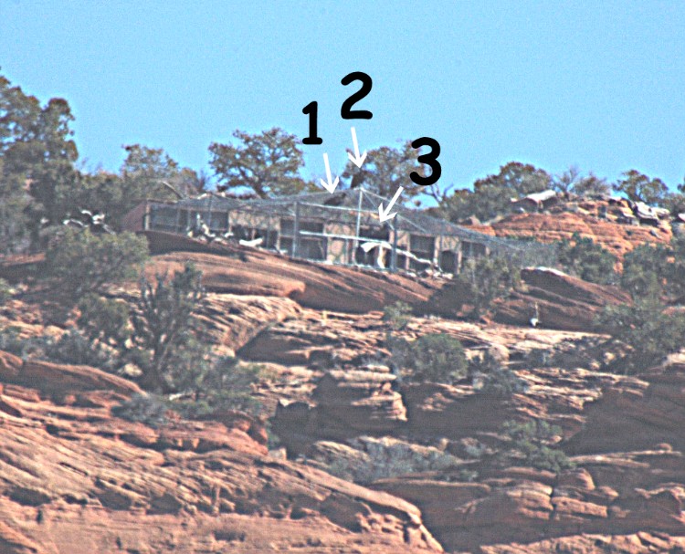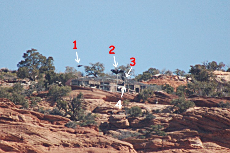 #1 Condor still inside it pen. #2 Condor perched on top of the release pen. #3 two Condors still inside.