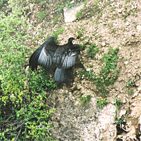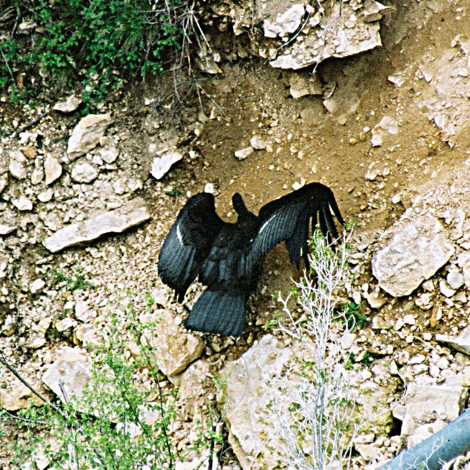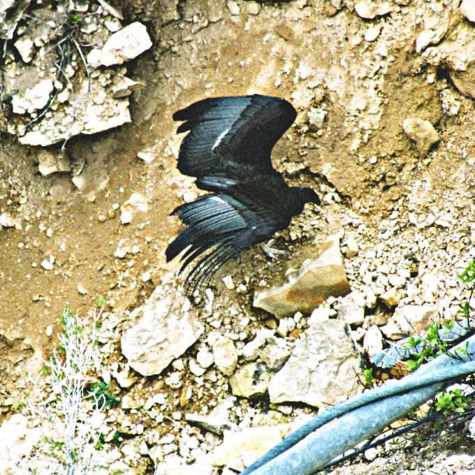 5 images of the newest condor #350 at the water pipe copying the older birds actions.