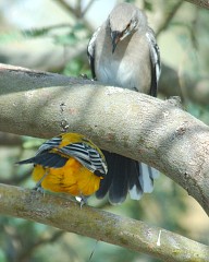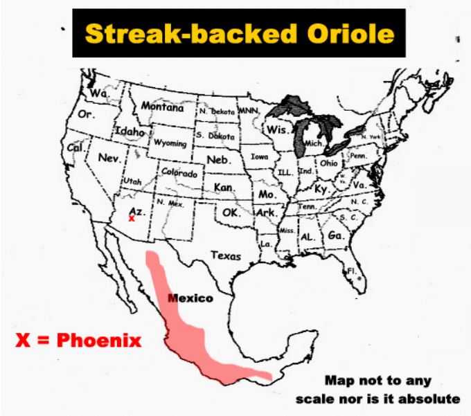 The Hooded Oriole has a bared back and the Streak-backed has light broken streaks which I shall try to show.