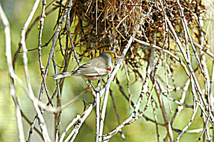 Yep, in just a few minutes this virden flew in with nesting material.
