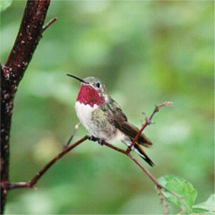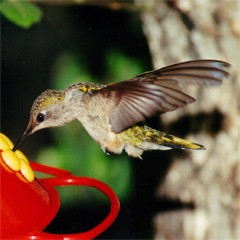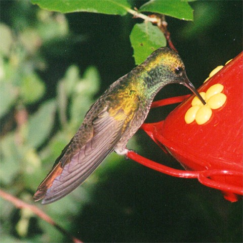 ![]() Is this the wrong bird? Note the under side of its bill is pink. This is not the bird that is in the other photos. Do you think there might two Beryllines there? Is this the hybrid Berylline? Take a closer look at all of these birds. |
