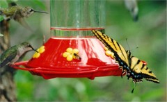 ![]() When the butterfly wanted a drink it just barged in and all of the birds flew away. |