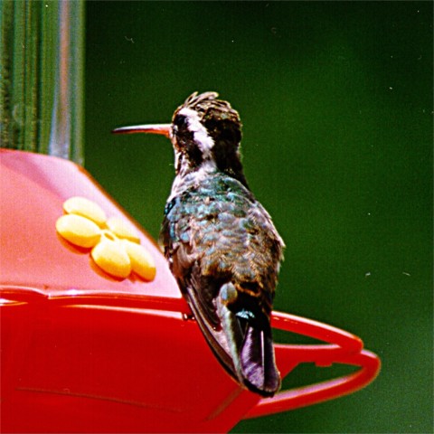 A frequent visitor to the feeders is this beautiful White-eared hummer.