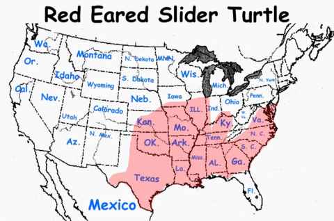 This the Turtle you bought in the dime store years ago, thus it got the nick name The Dime Store Turtle. It is best identified by the bright red, orange, or yellow stripe just behind its eye eyes.