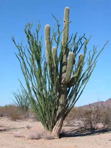 These are Chollas pronounced (Choy-ya). Bad-bad-bad stuff to get near. Their spines/needles/thorns are like fish hooks, once in you don't get them out. So far I haven't found much of any thing they can not penetrate including my tires & shoes. I did finally find 4 six-ply mud & snow light truck tires and so far (knock on wood for me) they have got through these tires. (knock-knock).