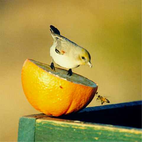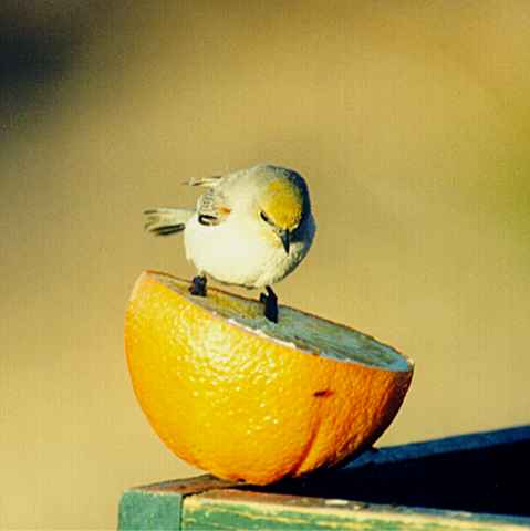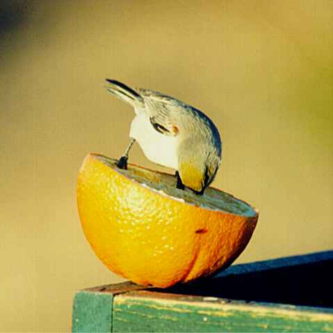 Bird up date while I was working. The Verdins are pecking at my oranges on the seed tray. Many Sparrows on the ground Black-throated, White-crowned, and a few others I cannot ID at this time. Also the Gils's are still coming to the seed try for the oranges. My working and moving around didn't seem to bother these birds.