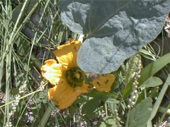Grows along streams and on desert sandy flats. Some are so large they look as if they are taking over every thing. Very large green-grey triangular leaves. Has a large yellow funnel shaped flower. produces a small 2-3 inch miniature watermelon looking gourd which turns bright yellow when ripe. It's been said that the roots of some of the very large plant weigh 100 plus pounds. The melons are not eatable and are poisonous to some. I have been told the the Coyotes do eat them, but I have never seen this happen. Flowers April - July.