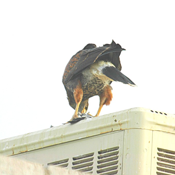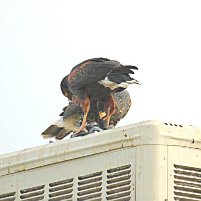 I KNEW THE HAWKS, HARRIS' AND RED-TAILS WERE CATCHING & EATING THE PIGEONS BUT HAD JUST NEVER BEEN A WITNESS TO IT.