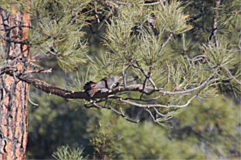 Before going on let me say, at no time where there less than a dozen or more of these birds on the ground and in the trees around this mud hole/tank during the daylight hours. The only problem was, they stayed on the opposite side of where I had my camera set up and seemed to fly for no special reason. So, about the time I would get focused on one it up and would fly off.