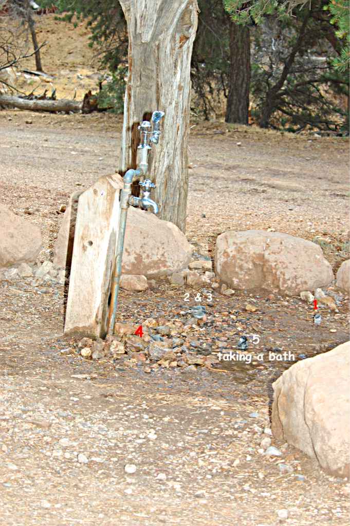 1 Through 4 Pygmy Nuthatches, 5 taking a bath Mountain Chickadee.