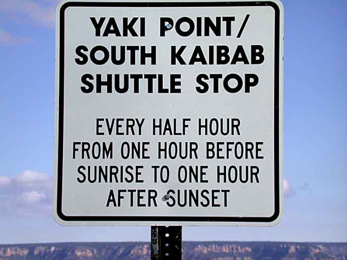 Yakie point is only accessed by shuttle bus or I should say the South Kaibab Trail Head is only accessed by shuttle bus.