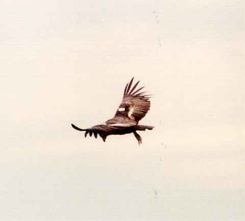 Like I said earlier, the Condor was quite high and quite away off, out over the canyon. Not knowing if it would come in any closer, I started taking photos of it at a very long distance. |