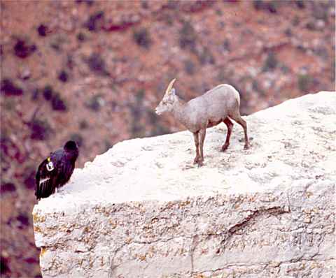 The Condor spread its wings out and ran at the ewe chasing it off the rock.