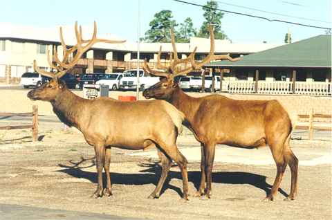 South Rim of the Grand Canyon, the Elk are walking the streets in search of food and water.