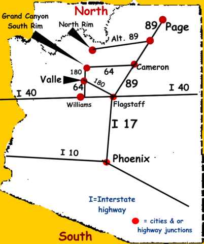 Below is a crude map of where the Grand Canyon is in the state of Arizona.
