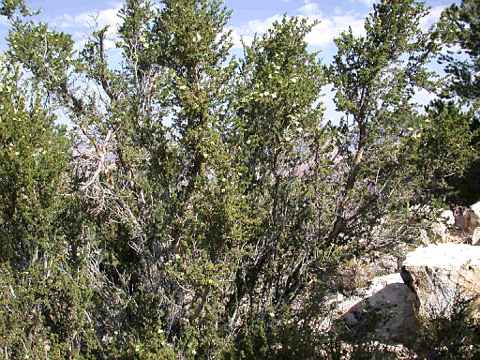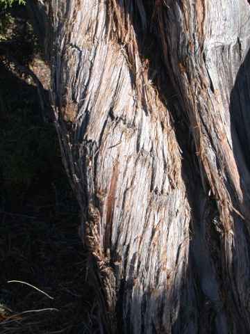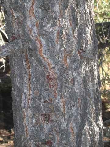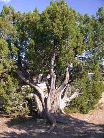 The trees that look all twisted and bent out of shape and have the shaggy/hairy bark, are the Juniper Pine.