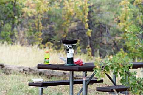 3 eggs, 4 bacons, 1 Qt. of gatorade & a few other snackies. Note my 1 burner stove.