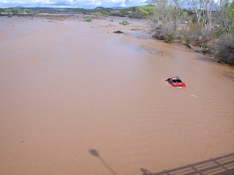 in Arizona when ever it rains and fills the washes that cross the roads where it says