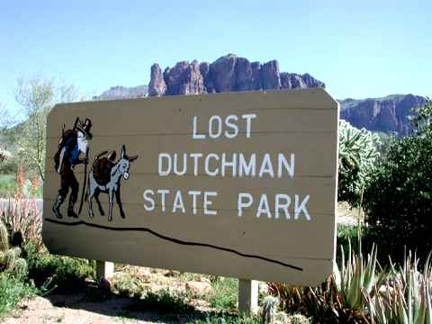Driving up the hill into the Lost Dutchman Park here is the first scene to meet your eye. As you drive into the parking area there are a few more views of the mountain. I know it's hard to see but, the yellow going up the mountain side is fields of Arizona & California Poppies. We'll get a closer look later on.