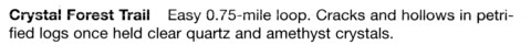 | Blue Mesa | Agate Bridge | The Jasper Forest | The Crystal Forest | The Giant Logs | The Long Logs Agate House |