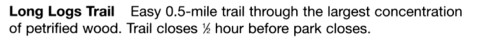 | Blue Mesa | Agate Bridge | The Jasper Forest | The Crystal Forest | The Giant Logs | The Long Logs Agate House |