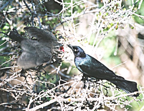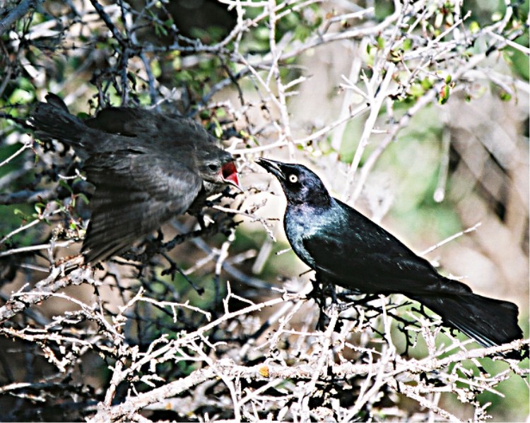 OK, that's more like it. This is a Brewers Blackbird male feeding its chick.