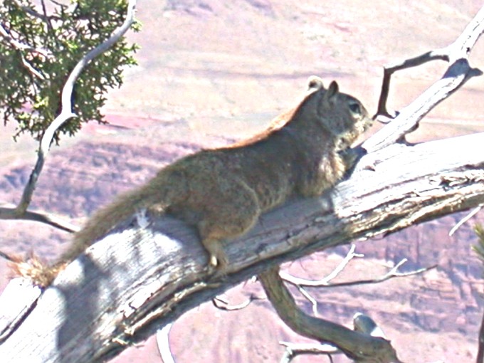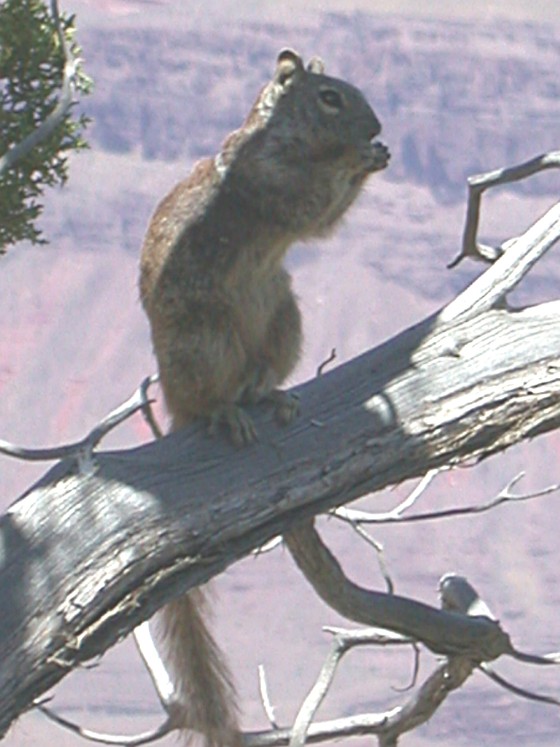 The next morning I went back to my favorite photographing spot only to find the Squirrels had decided to occupy the bare branch sticking out over the canyon wall. The sun was not quite in the right place for good photographing yet but I snapped a few images any way.