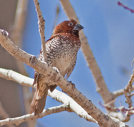 Nutmeg Mannikin (Lonchura punctulata), San Pedro House, Sierra Vista, Cochise County