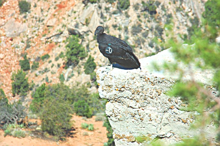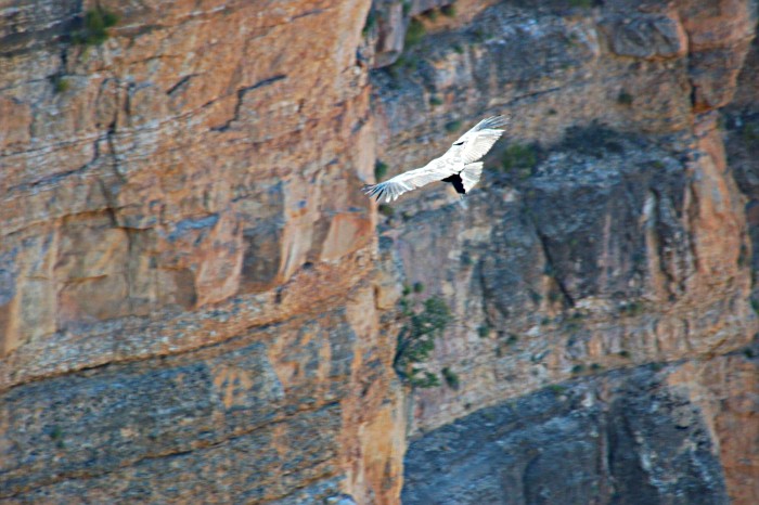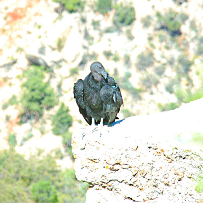 as they soar over and perch on the cliff rocks at the South rim of the Grand Canyon