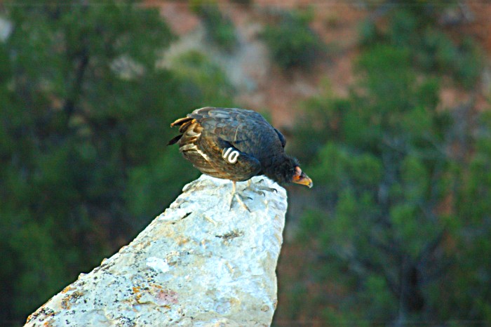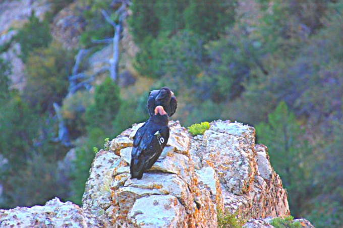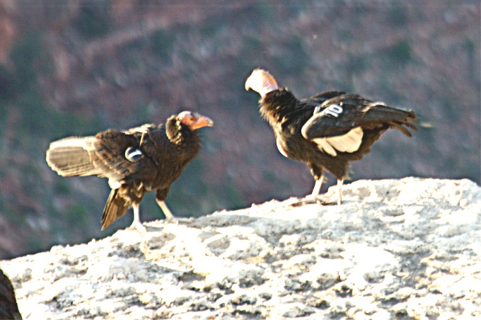 as they soar over and perch on the cliff rocks at the South rim of the Grand Canyon