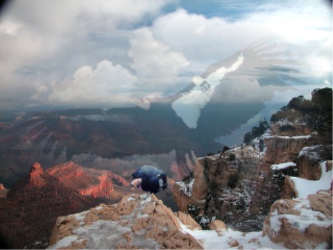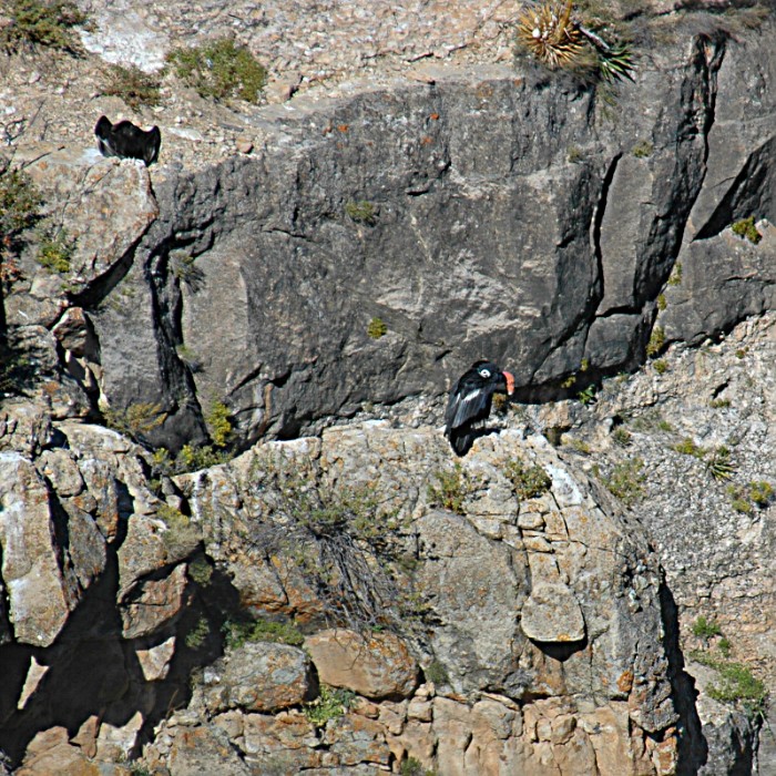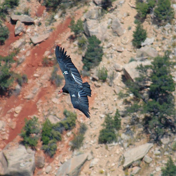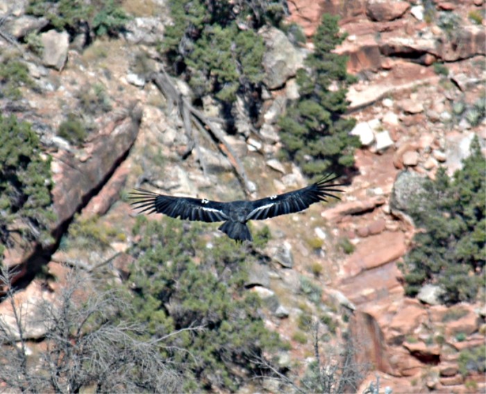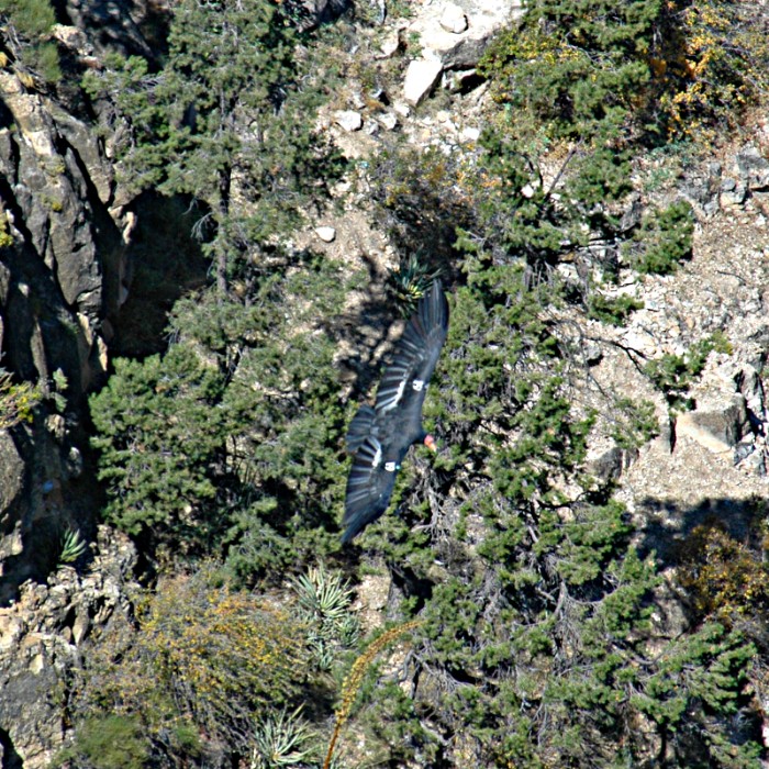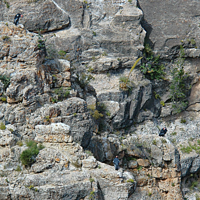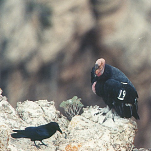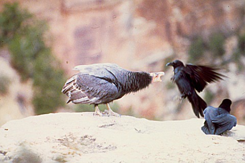 as they soar over and perch on the cliff rocks at the South rim of the Grand Canyon
