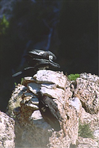 as they soar over and perch on the cliff rocks at the South rim of the Grand Canyon