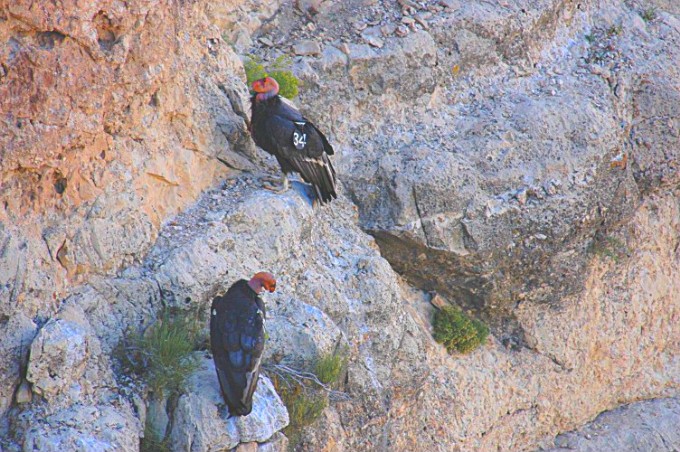 as they soar over and perch on the cliff rocks at the South rim of the Grand Canyon