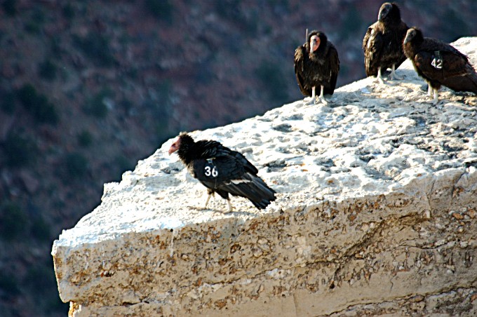 as they soar over and perch on the cliff rocks at the South rim of the Grand Canyon