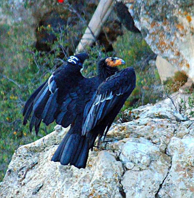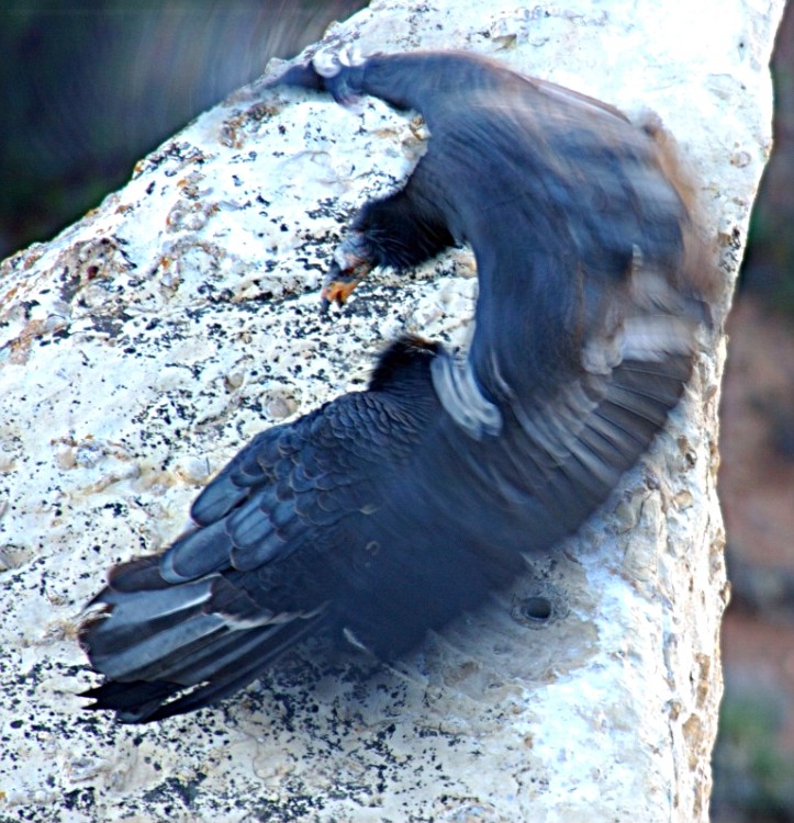 as they soar over and perch on the cliff rocks at the South rim of the Grand Canyon