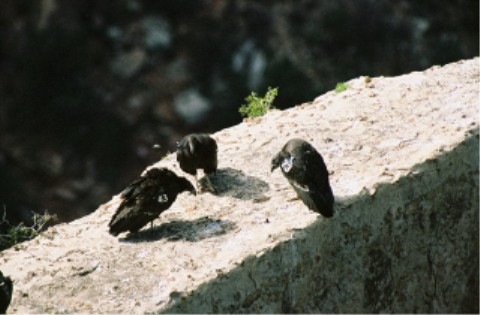 as they soar over and perch on the cliff rocks at the South rim of the Grand Canyon