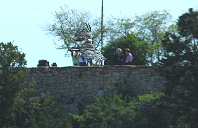 as they soar over and perch on the cliff rocks at the South rim of the Grand Canyon